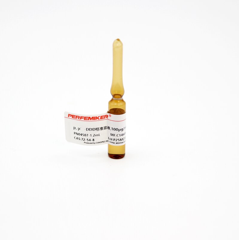 作為國家或行業(yè)標準物質(zhì),p,p’-DDD溶液支持量值溯源體系的構(gòu)建。其標準值(100μg/mL)通過重量-容量法配制,并采用氣相色譜法核驗,確保不同實驗室間檢測結(jié)果的可比性。