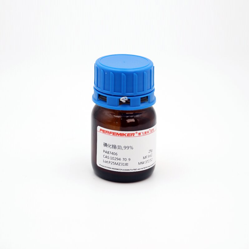 碘化錫被廣泛用作制備無鉛無毒混合鈣鈦礦材料的前驅(qū)體,錫基鈣鈦礦表現(xiàn)出優(yōu)異的電學(xué)和光學(xué)性能,如高電荷載流子遷移率、吸收系數(shù)和小的激子束縛能。應(yīng)用于半導(dǎo)體研究、太陽能電池、 材料科學(xué)、化學(xué)合成、催化和光子學(xué)。