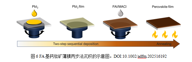 將多功能聚合物聚醋酸乙烯酯(PVAc)引入PbI2前驅(qū)體中,PVAc中豐富的羰基抑制了PbI2的結(jié)晶并釋放其應(yīng)力,從而延緩了其與銨鹽的反應(yīng)速率,調(diào)節(jié)了鈣鈦礦薄膜的結(jié)晶過(guò)程。獲得了高結(jié)晶度、優(yōu)選晶取向、減少PbI2殘?jiān)?、低缺陷密度和釋放?yīng)力的高質(zhì)量FA基鈣鈦礦薄膜,大大提高了PSCs的功率轉(zhuǎn)換效率,達(dá)到25.79%,同時(shí)顯著增強(qiáng)了存儲(chǔ)穩(wěn)定性、熱穩(wěn)定性和運(yùn)行穩(wěn)定性。