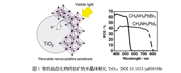 2012年,Park和Gr?tzel研究團隊采用甲基銨鉛碘(CH?NH?PbI?)鈣鈦礦納米顆粒作為光吸收層,將其與介孔TiO?以及固態(tài)空穴傳輸材料Spiro-MeOTAD相結(jié)合,成功地將PSCs的PCE提升至9.7 %,并具有出色的長期穩(wěn)定性。