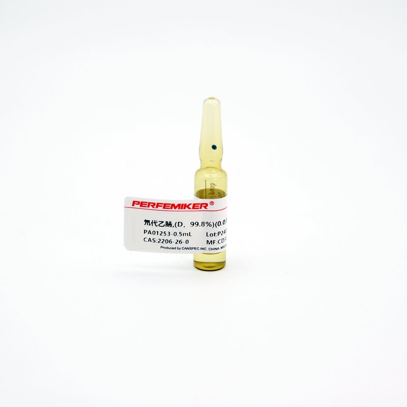 博飛美科的氘代乙腈,(D,99.8%)(0.03% v/v TMS)為NMR溶劑,產(chǎn)品穩(wěn)定,定制速度快,極大地方便了廣大科研客戶的使用需求。產(chǎn)品包裝為10X0.5ml。查詢關(guān)鍵詞:NMR溶劑,2206-26-0,氘代乙腈,(D,99.8%)(0.03% v/v TMS),Acetonitrile-d3,博飛美科,Perfemiker,上海,廠家現(xiàn)貨。